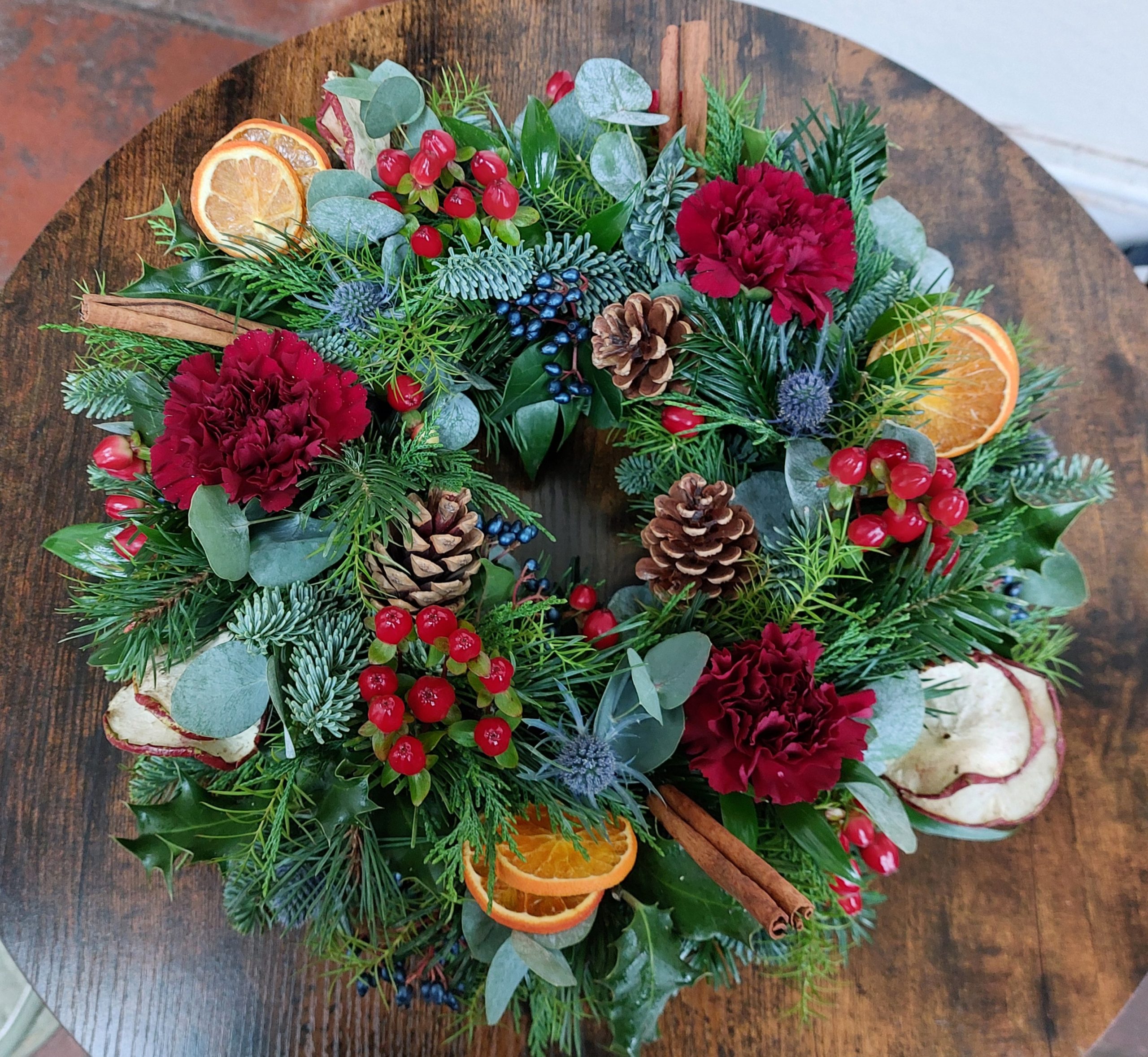 Traditional moss based wreaths, made ready to hang on your door. Each wreath will be made with a selection of seasonal foliage, along with a mixture of Christmas accessories, finished with a bow.